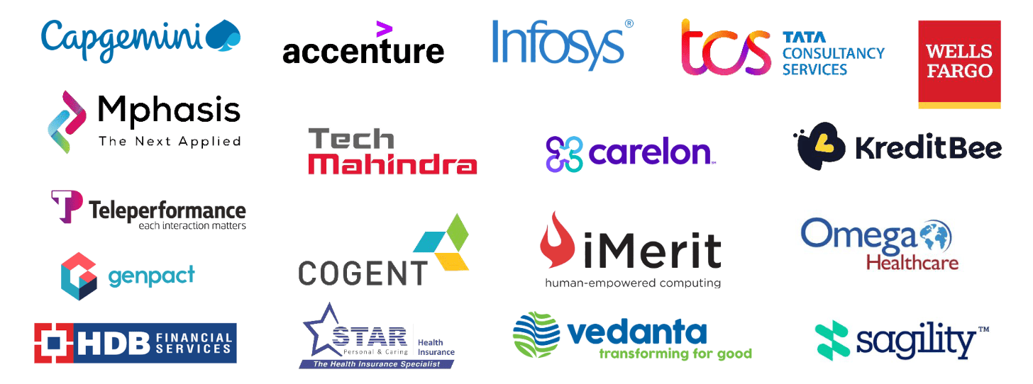 After successful training, students are placed in reputed companies across sectors like IT, ITES, BPO (Voice & Non-Voice), BFSI, Retai and more, with an 85%+ placement record across Bengaluru, Hyderabad, Pune, Mumbai, and Chennai.